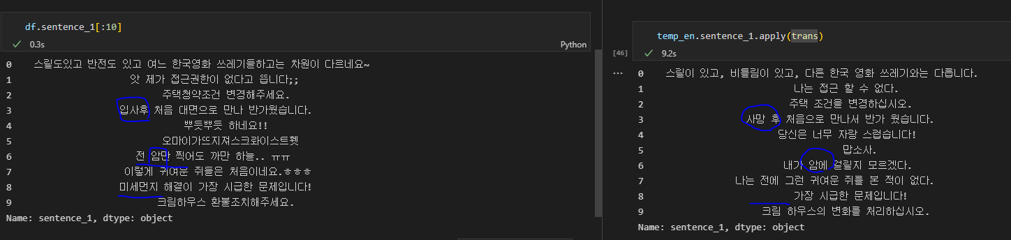 2. Dataloader에서는 문장을 tokenizing을 한 값이 아닌 문장 그대로를 전달해주었다. - 내부적으로 now()함수에 str을 지원하지 않는 error가 발생하였다. 실패
