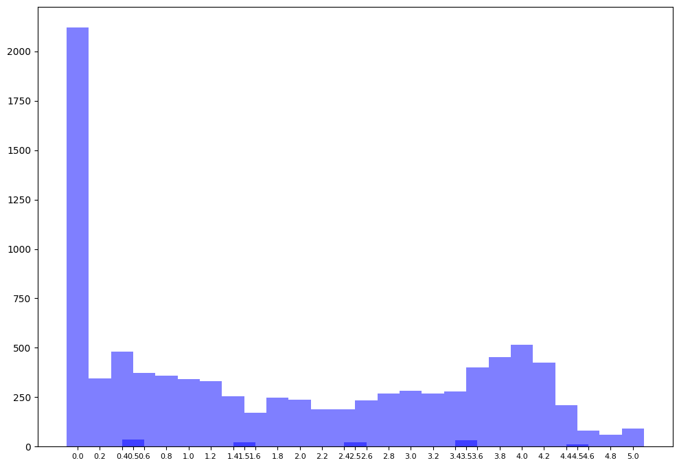 외부 데이터를 사용하는 것은 금지이고, 데이터 증강을 해도 랜덤하게 근거 없이 증강하는 것이 아니라 실행시키면 얻을 수 있는 근거 있는 방법을 사용해야 한다는 룰이 있었다. 이를 토대로 생각해보았을 때 데이터 팀에서 생각한 방법은 문장 역번역, sentence1과 sentence2의 위치를 바꿔주고 라벨을 유지한 채로 데이터 추가가 있었다. 사실 sentence1과 sentence2의 위치가 바껴도 라벨 값은 유지되어야 하는 것이 맞다, 데이터가 10000개 내외로 많은 편이 아니었기에 최대한 많은 데이터를 확보해야 하는 것이 필요했다. s1 + [SEP] + s2와 s2 + [SEP] + s1은 임베딩을 지나게 되면 아예 다른 값이 나올 수도 있다. 유의미한 증강이 가능할 수도 있겠다는 생각이 들었다. 또 데이터 분포를 살펴보다보면 라벨이 0인 데이터가 굉장히 많고, 5인 데이터가 굉장히 적은 것을 알 수 있다. 이는 라벨간의 불균형을 의미하기도 했다.